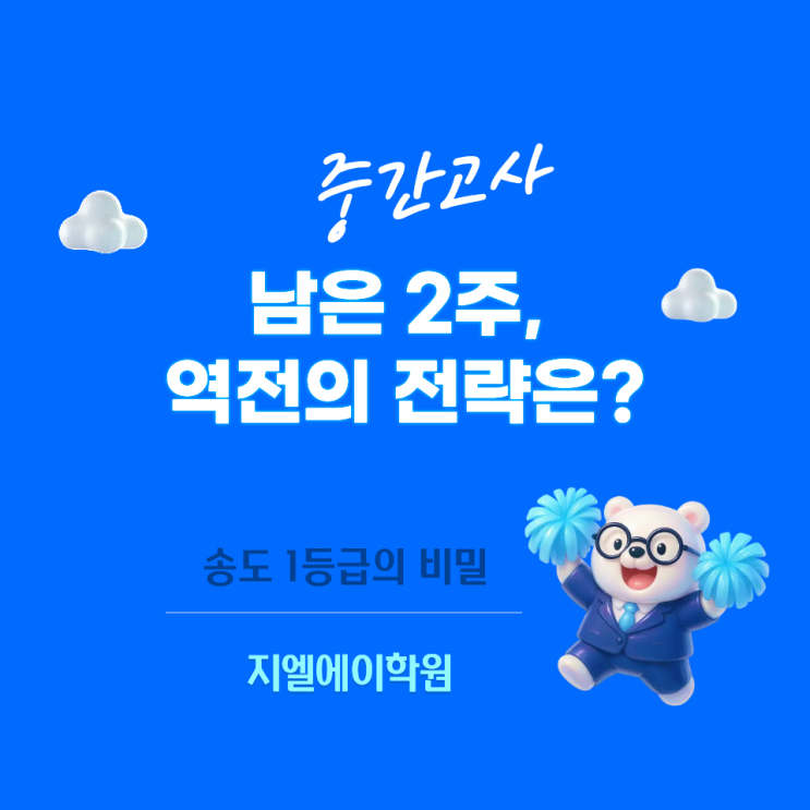 기출 분석부터 실전 모의 테스트까지, 중간고사 역전을 위한 마지막 14일 골든타임 전략 송도 지역 각 중·고등학교의 1학기 중간고사가 코앞으로 다가왔습니다. 특히 올해는 '2022 개정 교육과정'의 변화가 점진적으로 적용되기 시작하면서 학부모님들과 학생들의 불안감이 예년보다 높은 편입니다. "지금 시작해도 될까요?", "남은 기간 어떻게 공부해야 성적이 오를까요?" 근래에 학생과 학부모님들로부터 자주 듣는 질문입니다. 결론부터 말씀드리면, 이제 ‘암기형 공부’로는 80점대의 벽을 넘기 어려워졌습니다. 오늘은 송도 지역의 특수성을 기반으로 한 현실적인 내신 역전 전략을 공유하려 합니다. 1. 송....... <img src="https://blogthumb.pstatic.net/MjAyNjA0MjFfMjMy/MDAxNzc2NzUxNzEwNjM1.Wz0i0hThYUohg7msqLKGKcqplPviY_XPuvolTHMlQm0g.OXGzpxgr2R-sys_yj_Zi1XnfYSipwTM4EsA4Aiwz1Ukg.PNG/KakaoTalk_20260421_144607482.png?type=s3" />
