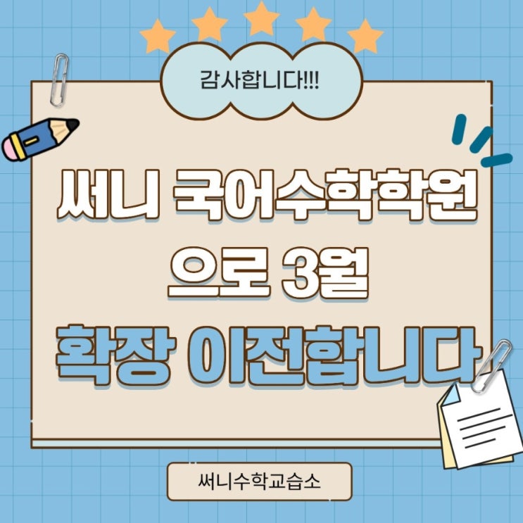 써니수학교습소 → 써니 국어수학학원 확장이전 안내드립니다