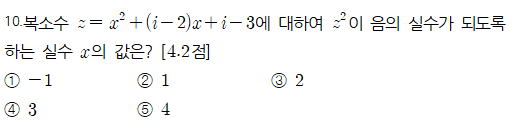 올해 관심을 두고 있는 학교입니다. 눈치 빠르신 분들은 연관이 있다 생각하시겠지만... 복소수의 대표적인 문제일거라 생각드는데 어떠신지요... 복소수 z의 제곱식이 음의 실수를 만족할 때는 z가 순 허수일 경우에 성립하므로 잘 정리해서 값을 찾을 수 있는 문제겠습니다. (가)를 미루어보아 x=1을 대입하면 p+q=0 임을 이용하여 문제해결이 쉽겠죠. (나)에서는 a+i가 근이므로 a-i 도 근임을 이용하여 문제를 해결하는 센스.. 아무쪼록 복습을 통해서 본인걸로 만드는 시간 가지셨으면 좋계네요... <img src="https://blogthumb.pstatic.net/MjAyNjAzMTVfMTMw/MDAxNzczNTQzMjQzNDg1.Zv0ZaktyVuDHQvIOd6qiv0VjguQbLWnAVH15mXADx7Ug.mLED_Jt_dyJbSn87XVE9icyz5_sY5oQTEmYH0EkHtUQg.PNG/%BD%BA%C5%A9%B8%B0%BC%A6_2026-03-15_114604.png?type=s3" />