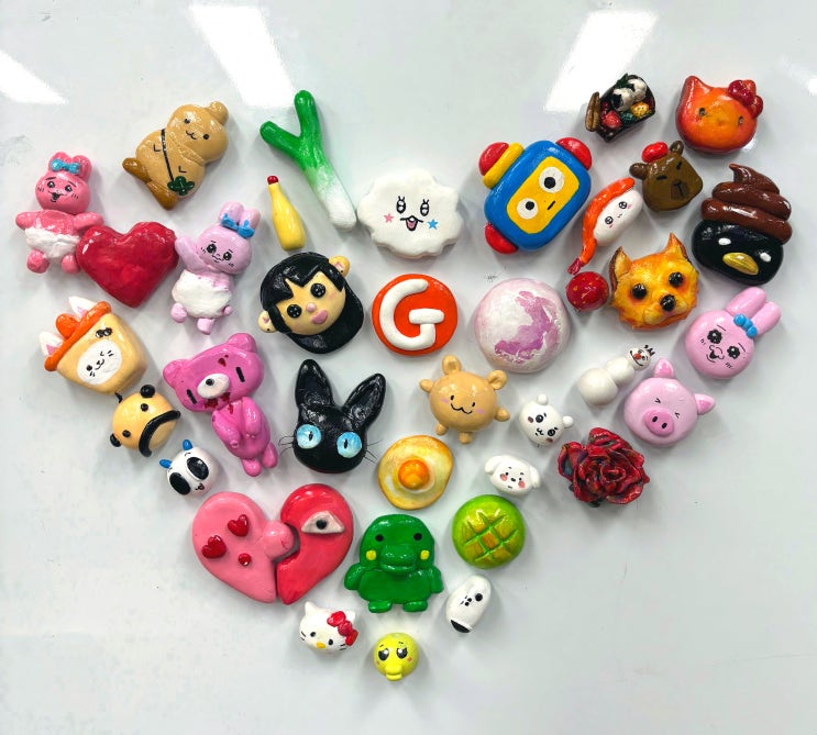 안녕하세요~ 이번 포스팅에서는 회화 중등반 아이들의 즐거운 지점토 자석 만들기 수업을 보여드리고자 합니다! 과연 우리 북구그린섬 중학생들이 어떻게 제작하였는지 함께 살펴보러 가볼까요~? 짠 ~~~! 학생들이 열심히 만든 결과물 먼저 살펴봅시다 ㅎㅎ 점토를 활용하여 각자 개성이 드러나는 아주 다양한 작품을 만들었네요~~ 작품을 통해 학생들의 무궁무진한 상상력과 창의력을 엿볼 수 있습니다. 그럼 완성 작품까지 어떻게 제작하였는지 과정을 함께 살펴볼께요! << 지점토 자석 만드는 법 >> 1. 만들 디자인 도안 그리기 2. 지점토로 모양 틀 잡은 후 디테일 잡기 3. 충분히 말린 뒤 아크릴 물감으로 채색하기 4. 채색한 지....... <img src="https://blogthumb.pstatic.net/MjAyNjAzMDVfMTg4/MDAxNzcyNjk0ODU4Nzg1.NAVWze68lClMgAD8k8NVvbKdijWwSEVPS6KdT0xOod4g.43XgXNx_bt19sXNZOpLesIrcR2VA6MNQKB2SEy4n6e0g.JPEG/SE-3608e0ec-d831-42dc-81ea-aef0f3f0c857.jpg?type=s3" />
