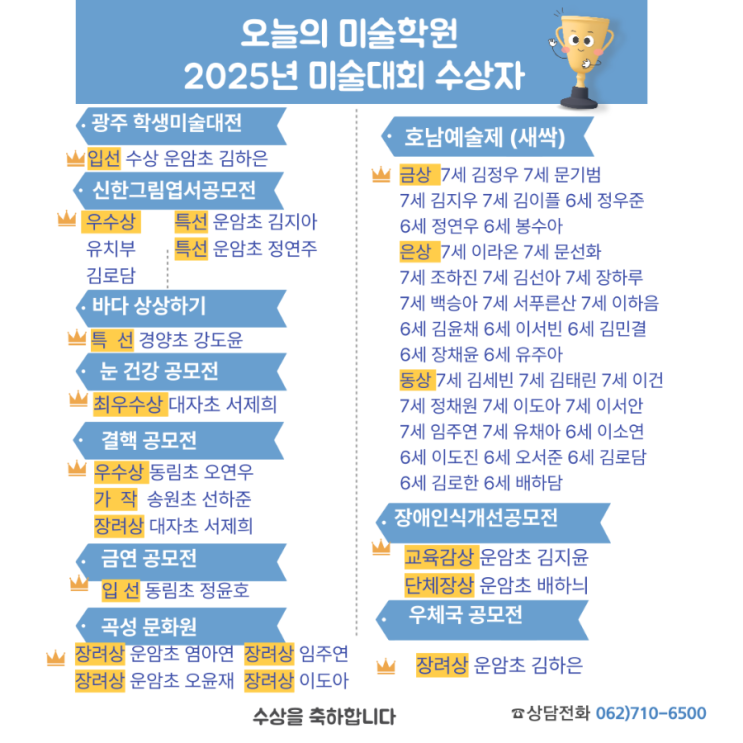 드디어! 2025년 수상 소식 전해요 (운암동 오늘의미술학원)