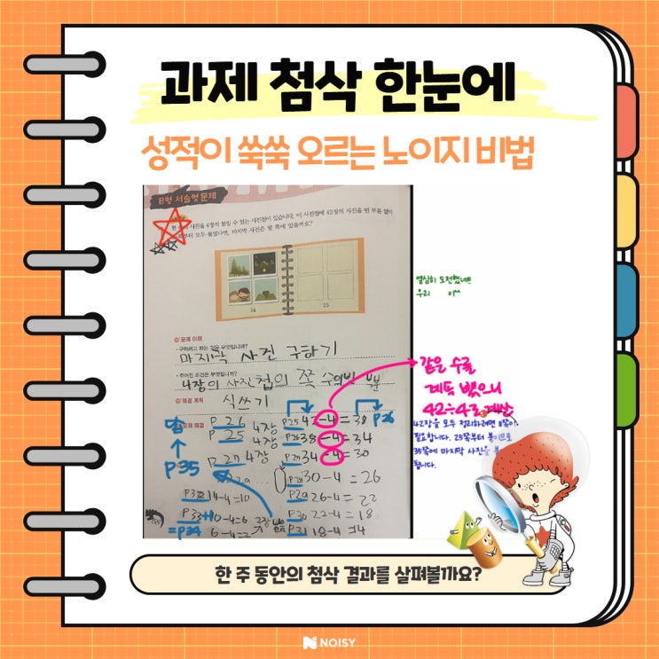 안녕하세요! 초등 사고력수학의 명가 CMS가 만든 실시간 온라인 클래스, NOISY 입니다 :) 푸릇푸릇 새싹이 돋아나는 3월! 노이지도 새학기가 시작되었습니다 수업 후 과제는 필수 ✍️ 하지만 정답을 맞히는 데 집중하기보다는 수업 시간에 어떤 걸 배웠는지 돌아보며 차근차근 점검하는 과정이라는 것을 기억해 주세요 ✨ A형 - 테마형 문제 수학 문제는 정답이 명확해 보이지만 풀이 과정은 다양하게 나올 수 있어요 ✅ 선생님의 코멘트를 참고해 내가 놓친 디테일한 부분을 점검하기! ✅ 새로운 방법으로 문제를 다시 풀어보기! ️ B형 - 서술형 문제 많은 학생들이 어려워하는 풀이 과정 쓰기 노이지의 4단....... <img src="https://blogthumb.pstatic.net/MjAyNjAzMTNfMjE4/MDAxNzczMzc1Mjg0Mjgw.d8hYurByEKr9t_ZuId-sTy6bcO6hGe44etEIegH1eUsg.kkfPsYVKwsDryC2RxWvtUwP6HKr-MNMKt6qMBXxeIPsg.JPEG/%C3%B7%BB%E8_3%BF%F9_%C3%B9_%B9%F8%C2%B0_1.jpg?type=s3" />