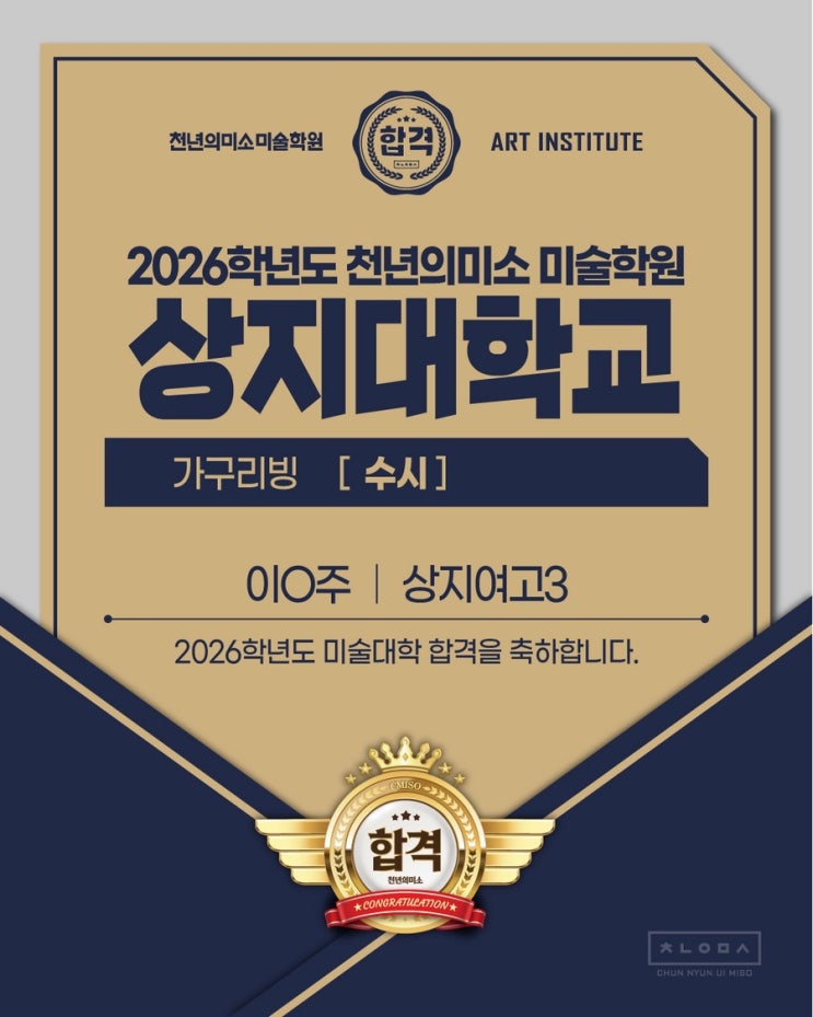 천년의미소 미술학원의 수업은 홍익대학교 출신 원장의 직강을 중심으로 진행됩니다. 천년의미소 미술학원은 2026학년도 미술대학 수시 전형에서 수시 집중반 전원합격이라는 우수한 성과를 달성하였습니다. 홍익대학교, 한양대학교를 포함한 총 15개 대학 합격은 대학별 맞춤 커리큘럼과 체계적인 실기 지도 시스템의 결과입니다. 5년 연속 홍익대 합격 배출 천년의미소는 우연이 아닌 지속적인 결과로 증명합니다. 홍익대학교 합격자를 5년 연속 배출, 매년 변화하는 전형과 실기 유형을 정확히 분석하고 대응해 왔습니다. ✏️ 왜 천년의미소는 전원합격이 가능할까요? ✔ 대학별·학과별 완전 맞춤 수업 ✔ 실기 유형, 출제 경향, 채점 포....... <img src="https://blogthumb.pstatic.net/MjAyNjAxMjNfMTQ3/MDAxNzY5MTQ2MTE0MjMz.Z6sZ4wcfFQzIfNbZN0qruJfslA-QrZz2BLRh247EbDsg.ZrOZxwVhrJlHoPzMPbxRa9Ua51b94b12ToUEHC8NJNAg.JPEG/IMG%A3%DF5342.JPG?type=s3" />