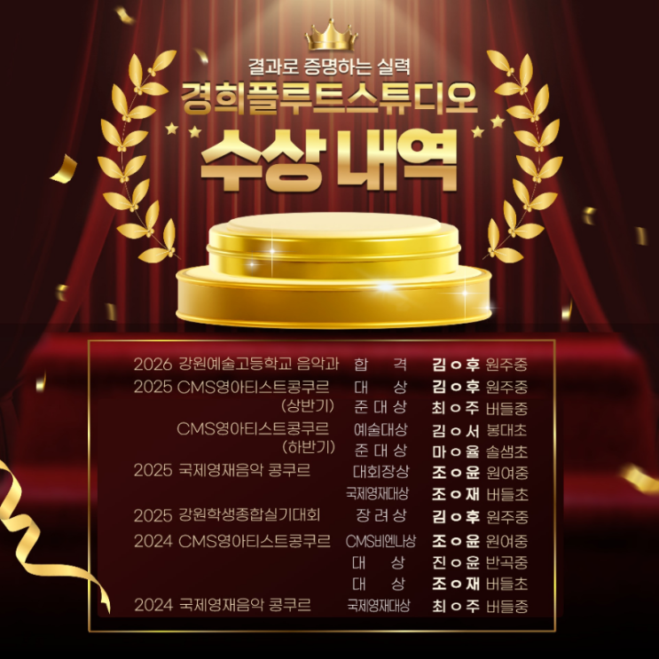 [원주플룻] 결과로 증명하는 실력! 경희 플루트 수상내역