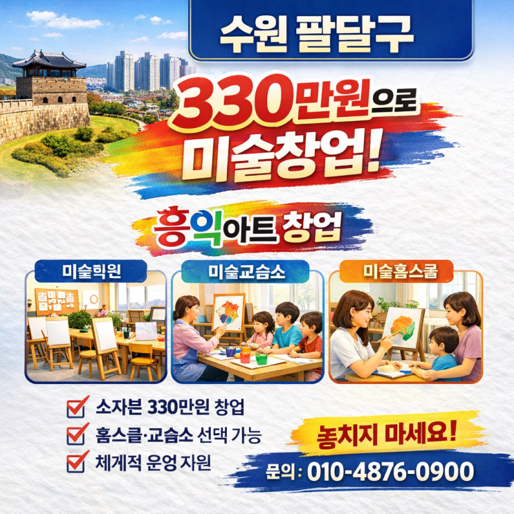 수원시 팔달구 홍익아트 가맹비 330만원으로 미술창업!홍익아트 미술학원·미술교습소·미술홈스쿨 창업 프로모션 놓치지 마세요