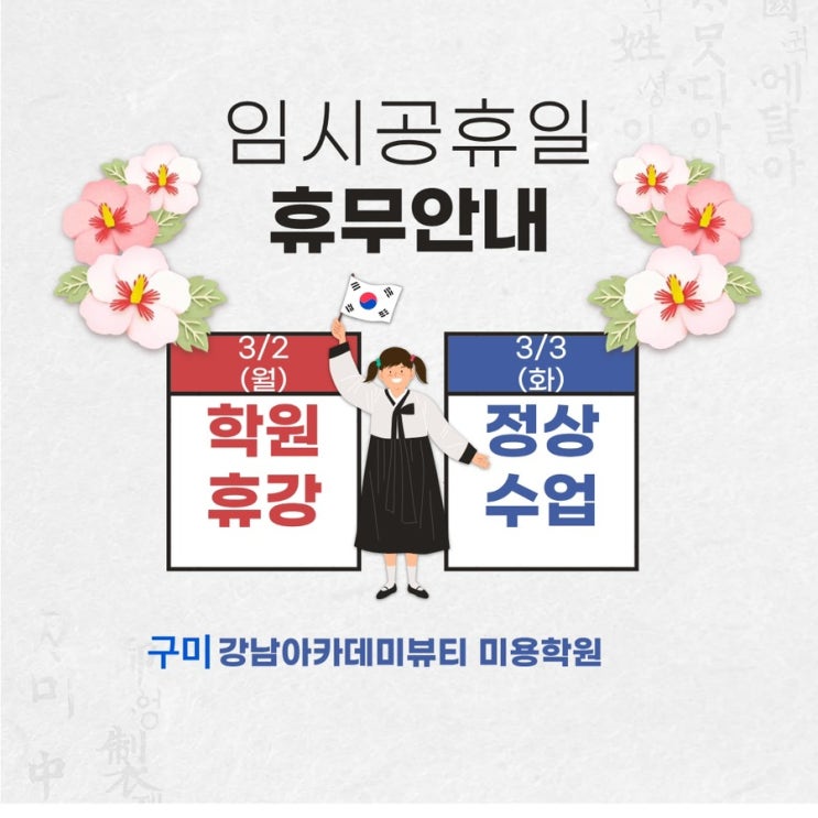 #구미강남아카데미뷰티미용학원 삼일절 휴강 안내