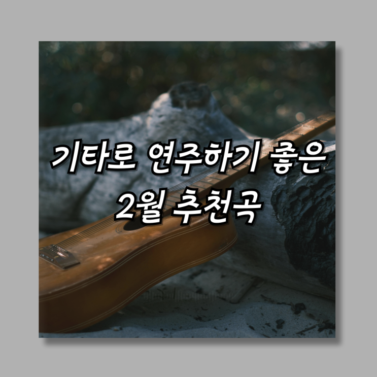 조용하지만 깊게, 겨울 끝자락에 치기 좋은 기타 곡들 2월은 기타 연습의 흐름을 다시 정리하기 좋은 달입니다. 연초의 의욕은 조금 가라앉고, 대신 차분하게 한 곡을 완성하 좋은 시기이기도 하죠. 그래서 이번 2월 기타 추천곡은 기타로 쳤을 때 매력이 살아나는 곡 연습곡으로 현실적인 곡들 위주로 골랐습니다. 1. 사랑하게 될 줄 알았어 – 전미도 잔잔한 발라드로 기타 반주에 정말 잘 어울리는 곡입니다. 스트로크 위주로 시작해도 충분히 분위기가 살아나요. 코드 수가 많지 않음 느린 템포로 안정적인 연습 가능 감정 표현 연습에 좋음 2월처럼 조용한 달에 딱 맞는 곡입니다. 2. 취중고백 – 김민석 기타 반주로 연주하면 원곡보다 더....... <img src="https://blogthumb.pstatic.net/MjAyNTEyMjhfMjkg/MDAxNzY2OTE2NTg5MjI2.EFGoh8WT4z4Skudl9LujMSu6B3jMMMoBZqss0seAVkIg.vD_oVFCWc7e5YD6f1WOC01J0law7gK67eyu5wz8z264g.PNG/002.png?type=s3" />