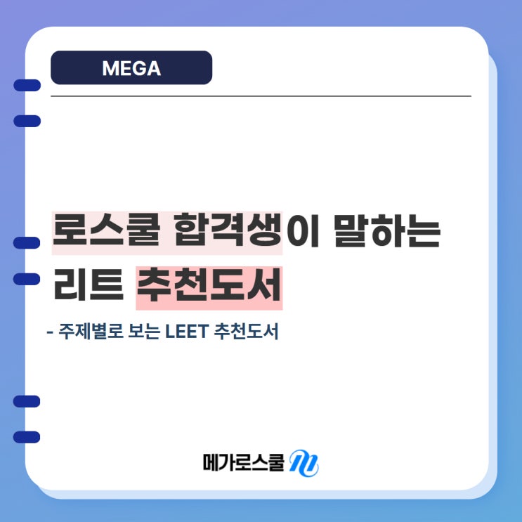 안녕하세요. 메가로스쿨입니다. LEET를 준비하다 보면 보통 강의 → 문제풀이 → 오답·분석의 흐름으로 공부를 하게 됩니다. 하지만 하루에 많은 시간을 투자하다 보면 어느 순간 집중력이 떨어지고, 학습 효율에 한계를 느끼는 순간이 오기도 하죠. 문제를 많이 푸는 것도 중요하지만, 그보다 더 중요한 건 지문을 정확하게 이해하는 독해력과 배경지식입니다. 텍스트를 읽으면서 구조가 머릿속에 정리되고, 이미 익숙한 소재가 나오면 심리적 부담이 줄어들고 집중력도 훨씬 높아집니다. 그래서 오늘은 로스쿨 합격생들이 실제로 추천한 LEET 독서 리스트를 <철학> <논리> <과학> 주제별로 정리해봤습니다. 철학 도서 - 『법....... <img src="https://blogthumb.pstatic.net/MjAyNjAyMDNfMjA2/MDAxNzcwMTA2Nzc3NDQ3.xQaQTe4w9GDMk2ZKwLokiqu7QzOSaAf501Wq7NMxZrgg.XV0Pf0u0taQ68UxKeA10lrst80Bl3QTcWG6iG3SR8Cgg.JPEG/%B7%CE%BD%BA%C4%F0_%C3%DF%C3%B5%B5%B5%BC%AD%280203%29_1.jpg?type=s3" />