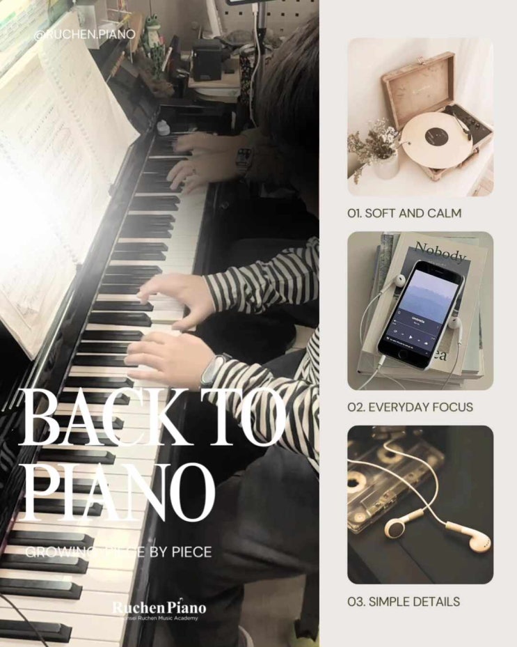 피아노를 배웠던 분들 중에는 한 번쯤 흥미를 잃고 중단한 경험이 있는 경우가 있습니다. 어린 친구들의 경우 기초가 충분히 정리되지 않은 상태에서 진도 위주의 수업만 반복되면 피아노 레슨이 점점 부담으로 느껴질 수 있습니다. 반포 연세루첸음악원에서의 피아노 레슨은 진도를 빨리 나가는 방식이 아니라 손에서의 세분화된 학습과 개념적 부분에서의 체계적인 지도로 수업을 진행합니다. ⸻ 기초가 탄탄하게 세워지는 피아노 레슨이 필요한 이유 피아노 레슨에서 가장 중요한 것은 여러 개념학습과 더불어 기본 터치와 손모양입니다. 손의 사용이 안정되지 않으면 연습 시간이 늘어날수록 오히려 실력이 정체되거나 피아노에 대한 흥미를....... <img src="https://phinf.pstatic.net/image.nmv/blog_2026_02_02_3948/VyAMJqoPpx_03.jpg?type=f480x480" />
