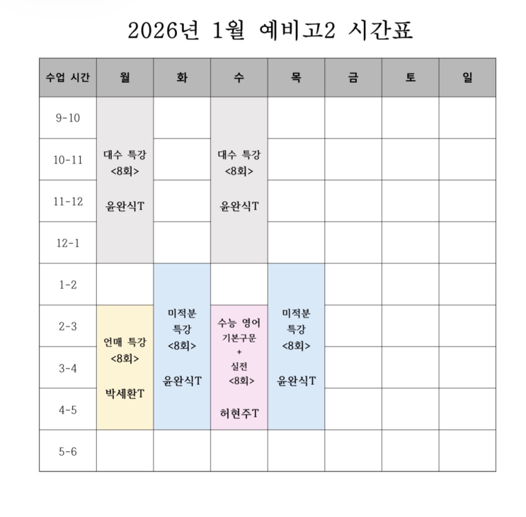 [임규범토익학원] 26년 1/2월 방학특강시간표