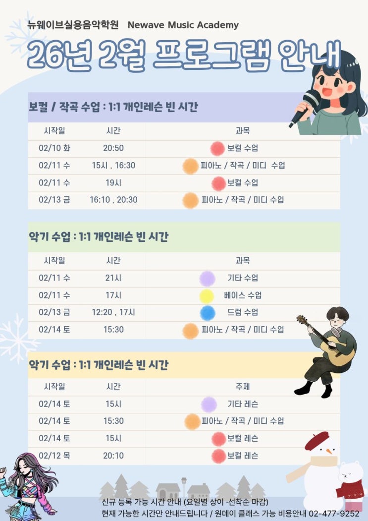 학원 상담을 하다 보면 종종 이런 말을 듣는다. “집 근처에도 학원은 있었어요.” 요즘엔 동네마다 음악학원 하나쯤은 있다. 걸어서 5분, 버스로 두 정거장. 분명 더 편한 선택지도 있었을 텐데, 그럼에도 불구하고 뉴웨이브를 찾아온 학생들이 있다. 왜 굳이, 집 앞 학원이 아닌 뉴웨이브였을까? 처음 상담에서 가장 많이 나오는 이유는 의외로 단순하다. “여기는 그냥 수업만 하는 느낌이 아니었어요.” “어떻게 연습해야 하는지 처음으로 알 것 같았어요.” “취미인데도 진지하게 배울 수 있을 것 같았어요.” 집과의 거리보다, ‘이 시간을 맡겨도 되겠다’는 느낌이 더 중요했다고 한다. ⸻ 1️⃣ 가까운 학원은 편했지만, 방향이 보이....... <img src="https://blogthumb.pstatic.net/MjAyNjAyMTBfMjA4/MDAxNzcwNzEwMDU0MDcw.GM9kRfQS2alDltuPXxOCfD2ohQKc4EhlU_TsKnAu7fgg.2L4HqUMQrSQjrBUC0gZN65RYqC7oDSVYPIkzNrWsTwog.JPEG/12%BF%F9_%C7%C1%B7%CE%B1%D7%B7%A5_%BE%C8%B3%BB_%283%29.jpg?type=s3" />