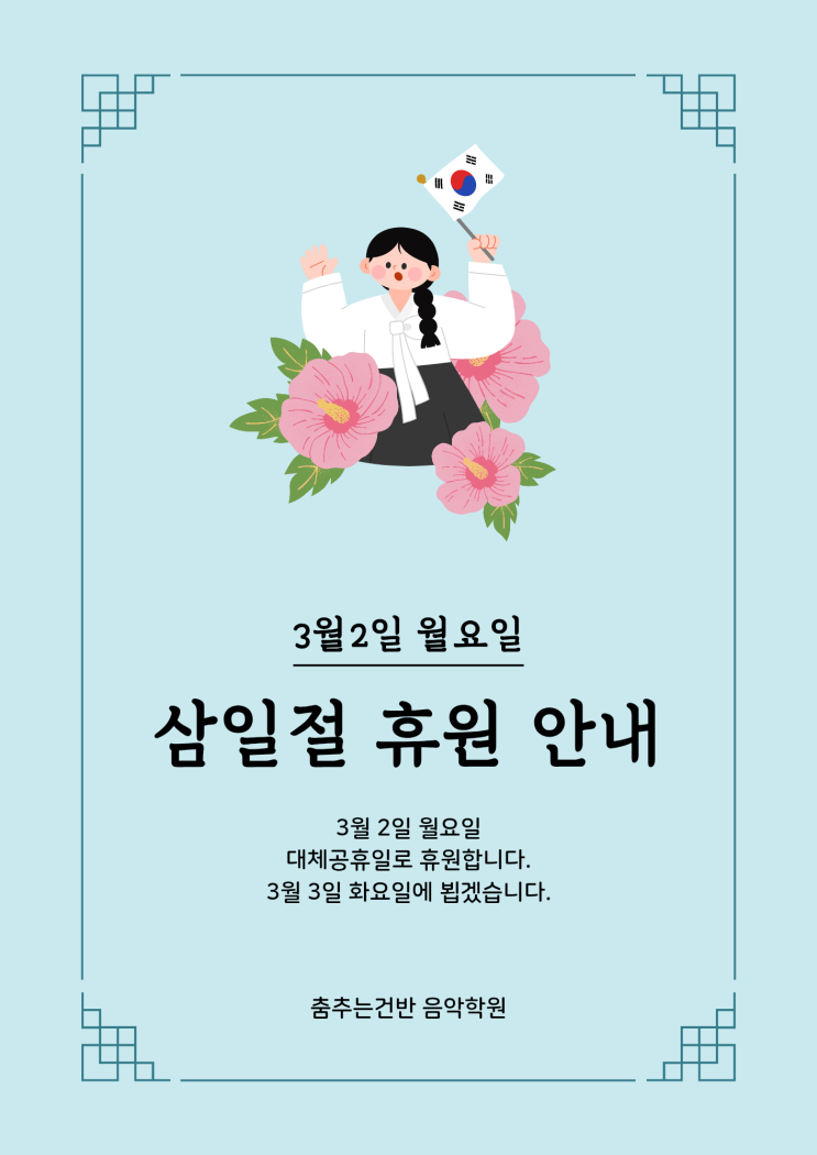 연서초 피아노학원 삼일절 휴원 안내