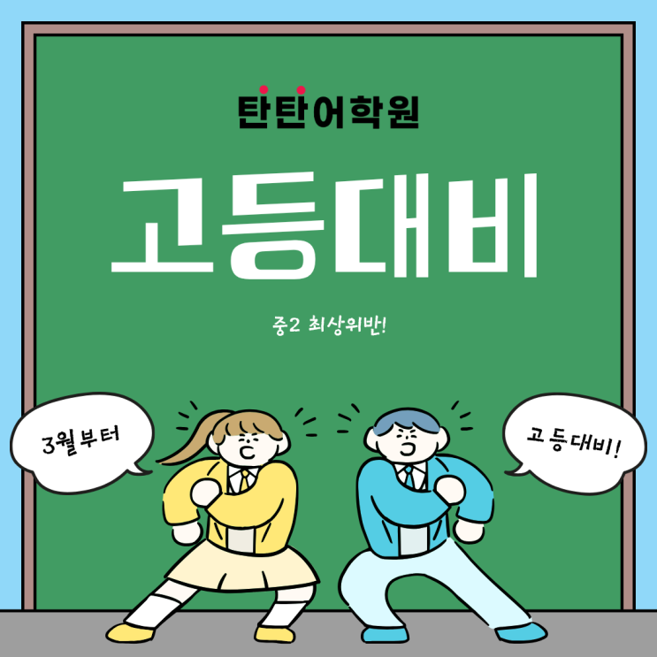 안녕하세요! 파닉스부터 수능까지 완벽한 영어를 완성하는 광안중/망미중/연제중 탄탄어학원입니다! 곧 3월 신학기가 시작되었죠~ 탄탄 중2 최상위반 학생들은 벌써 3월부터 고등 대비 수업을 시작했습니다! 보통 중학교 영어는 내신 위주의 학습이 중심이지만, 탄탄의 최상위반 학생들은 중등 과정에서 그치지 않고 고등 영어의 기본 틀을 미리 잡는 것을 목표로 합니다. 특히 중학교 2학년은 고등 영어로 넘어가기 전 가장 중요한 시기라고 할 수 있습니다. 이 시기에 문법과 구문 독해의 기초를 제대로 잡아두면 고등학교에 올라가서도 훨씬 수월하게 학습할 수 있기 때문입니다. 그래서 광안중/망미중/연제중 탄탄어학원에서는 중2 최상위반....... <img src="https://blogthumb.pstatic.net/MjAyNjAzMTJfNzIg/MDAxNzczMzE0ODkwNDE3.pJj05No-rY0H5mV7knbGdnSctqfvlNp_3NKQaPUa0xwg.kROl_66DrzjTmhCd9XYDYrvKny6dHKHm7FOqfxyO_l8g.PNG/%C1%A6%B8%F1%C0%BB_%C0%D4%B7%C2%C7%D8%C1%D6%BC%BC%BF%E4._%281%29.png?type=s3" />