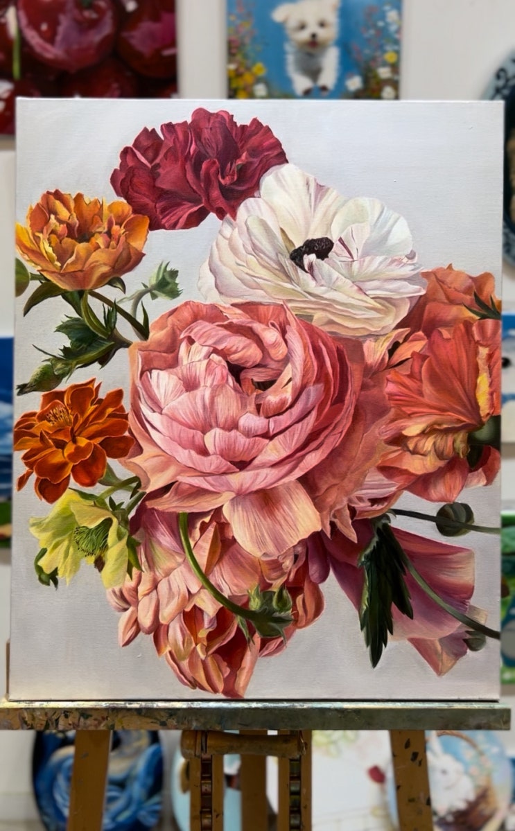 오늘은 수강생님이 스케치부터 채색까지 정성스럽게 진행한 꽃 유화 작품을 들고 왔어요 꽃을 그린 그림이지만 단순한 정물 연습이라기보다는 색이랑 밀도를 얼마나 섬세하게 다룰 수 있는지가 잘 보이는 작업이에요. 겹겹이 겹친 꽃잎마다 명도 차이를 무리 없이 연결했고, 핑크·코랄·버건디 계열 색감도 과하지 않게 잘 어우러졌어요 특히 가운데 꽃은 붓질을 급하게 하지 않고 차분하게 쌓아 올려서 입체감이 정말 잘 살아났네요✨ 한 번에 잘 그리려 하기보다 천천히 보는 힘이 많이 늘었다는 게 느껴져요 꽃이 많아서 자칫 복잡해질 수 있는 구도인데도 전체 화면이 흐트러지지 않는 건 색 고르는 기준이랑 배치 감각이....... <img src="https://blogthumb.pstatic.net/MjAyNTEyMTdfMTQ1/MDAxNzY1OTYxNzk1MDk5.mnN3_nDYq5tcgi3mI8uoMKFM5ir0IK052LXRiCHsiiUg.5RvcfrQPtAVOMhgSHDne4OaLPETx9EIgoIZK_PWsecog.JPEG/IMG%A3%DF9394.jpg?type=s3" />