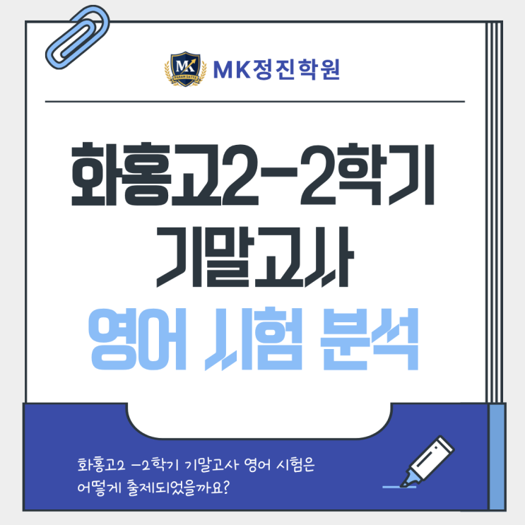 [화홍고 내신 수능 전문 MK정진학원] 화홍고 영어 내신 2학년 2학기 기말고사 시험 분석(2025년)