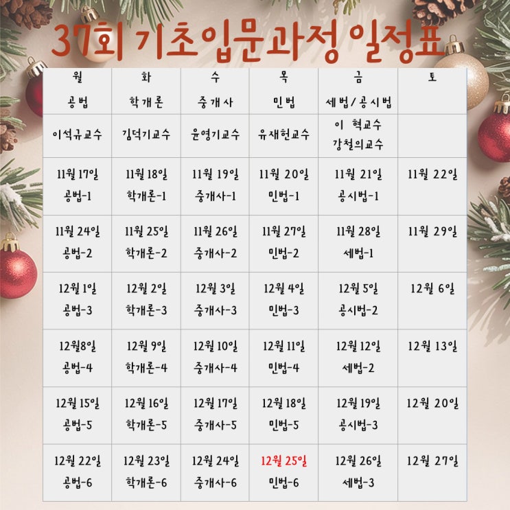 안녕하세요. 부천박문각학원입니다. 37회 공인중개사시험 대비반이 11월 17일 개강했습니다. 월요일 - 부동산공법 이석규 화요일 - 부동산학개론 김덕기 수요일 - 공인중개사법령.실무 윤영기 목요일 - 민법 및 민사특별법 유재헌 금요일 - 부동산세법 이혁 / 부동산공시법령 강철의(격주수업) 수업은 오전 10시 ~ 오후 1시 30분(끝나는 시간은 달라질 수 있습니다) 부천 유일의 공인중개사학원! 아직 고민중이시라면 학원에 오셔서 상담도 받아보시고 현장강의 분위기도 한번 느껴 보세요. 상담은 언제나 환영합니다. 032-348-7676으로 부담없이 전화주세요^^ 시작부터 합격까지 부천박문각이 여러분과 함께 합니다! <img src="https://blogthumb.pstatic.net/MjAyNTExMjhfMTk0/MDAxNzY0MjkzMzcwNzgw.HlhjPotwjHXF7lFsMhORljspUMol2Jd88IhrHhD0yQ0g.v6DkdGG49FWLas7eWJfcirCWTG5I9-3qbCxkRR1VybQg.JPEG/%C1%A6%B8%F1%C0%BB-%C0%D4%B7%C2%C7%D8%C1%D6%BC%BC%BF%E4_-001_%2840%29.jpg?type=s3" />