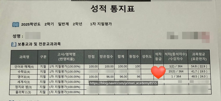 안녕하세요, 연세학원입니다. 오늘은 기말 고사 대비 시작과 더불어 지난 중간고사 소식을 전달하려고 합니다@ 저희 마석연세학원에서 국영수 모두 수강중인 학생인데요~~ 이번에 자랑스럽게도 언어와매체, 영어에서 1등급도 아니고 무려 1등을 받았더라구요! 언제나 진심과 정성 가득하게 수업하는 쌤들이 보람찬 순간이 아닐 수 없습니다ㅎㅎ 지금 고등부는 시험대비 시작했구요~ 중등부도 기말고사를 대비중입니다! 막막한 중고등학교 내신대비 마석중학교 앞 연세학원과 함께 해요!! 상담 문의 031- 595-8555 마석초등학교 마석중학교 앞 마산아구찜 2층 연세학원 <img src="https://blogthumb.pstatic.net/MjAyNTExMTJfMTI0/MDAxNzYyOTM0NTY1NTk0.m2rI8eoHr704INp4M28F4cKoEMNQALY0lRWXd76vnbAg.V4aa-nwZ6LTGvPXWOuMKM4sDrD-vlIgfvptc1DPn8x8g.JPEG/%B8%B6%BC%AE%B0%ED%B5%EE%C7%D0%B1%B3_%C7%D0%BF%F8_%C3%DF%C3%B5.jpg?type=s3" />