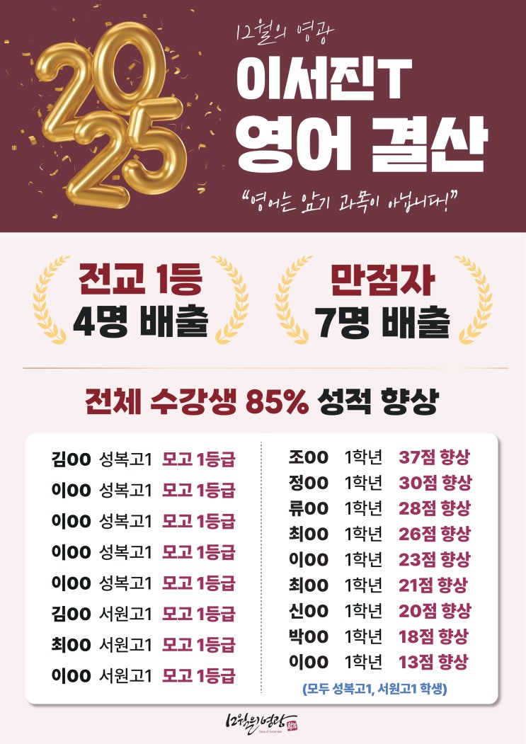 12월의영광 성복고1 서원고1 이서진T 영어 결산 영어는 암기 과목이 아닙니다. 멋진 성과를 12월의영광이 응원합니다. 성복고는 성복관에서 031.262.0950 서원고는 상현관에서 031.265.0950 <img src="https://blogthumb.pstatic.net/MjAyNjAyMjZfMjk3/MDAxNzcyMDkxMDYwMjE4.K2Li_QzOrOpvuh6ZmwHFeJYepZ-BqDSfujeV8GI1lSYg.6v3gFt83PCdw6IJlyP645hZe9w2IZbsSZwT4gq9JVfgg.JPEG/%C0%CC%BC%AD%C1%F8_%C3%D1%B0%E1%BB%EA.jpg?type=s3" />