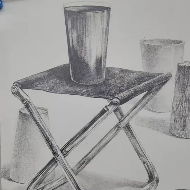 안녕하세요 김포 이화미술입니다~! 오늘은 25학년도 선화예중 소묘 시험문제와 합격 재현작을 준비해보았습니다. 먼저 25년도의 문제를 한번 살펴볼까요? 낚시의자 (소), 유리컵 1개 제시 조건 : 유리컵의 재질은 유리, 나무, 흰색, 검은색, 스테인리스, 도자기로 자유롭게 배치하여 그리시오. 문제와 물체 자체는 난해하거나 어렵지 않지만 형태와 기본기, 그리고 색감과 질감 표현을 요하는 아주 정석적이고 기본기를 충실히 보겠다는 출제자의 의도가 엿보이는 문제였습니다. 그럼 이화미술 합격생의 재현작을 함께 감상해보실까요? 이화친구는 주제부에 스테인리스 컵을 배치하여 낚시의자의 색감이 비치는 것을 표현하였고, 질감이 겹치지 않....... <img src="https://phinf.pstatic.net/image.nmv/blog_2026_02_04_3238/KfZ5DOhRxE_01.jpg?type=f480x480" />