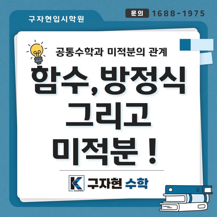 안녕하세요 김포시 토털입시솔루션 구자현입시학원 구자현 수학학원 입니다 수학 공부를 하다 보면 이런 의문이 들 때가 있죠. "지금 배우는 이 복잡한 방정식들이 나중에 정말 쓰일까?" 결론부터 말씀드리면, 네, 무섭도록 쓰입니다. 특히 이과 생들의 최종 보스인 '미적분'에서 승부를 가르는 것은 의외로 미적분 공식이 아니라 공통수학 에서 배운 함수와 방정식 실력입니다. 왜 공통수학 이 미적분의 성패를 좌우하는지, 그 연결고리를 파헤쳐 보겠습니다. 1. 미적분은 '함수'라는 도화지 위에 그리는 그림입니다 미적분은 말 그대로 함수를 쪼개고(미분) 합치는(적분) 학문입니다. ✔️ 공통수학: 함수의 정....... <img src="https://blogthumb.pstatic.net/MjAyNjAyMjBfMTYw/MDAxNzcxNTc4MTEwNzQ0.97mBGflMjAWIn-fiyS2cQKEAHXVHKinsap8SLlN2L-og.a86DHpnJOPgKP0v5Ht3O0biBMCGs5DsXBdbc2Pr9J5kg.JPEG/%BA%ED%B7%CE%B1%D7-%B1%B3%B0%FA%BA%B0-%BD%E6%B3%D7%C0%CF-002_%281%29.jpg?type=s3" />
