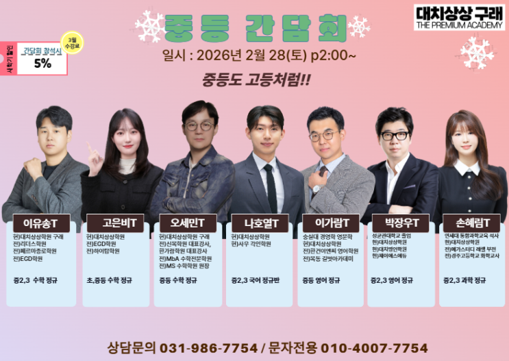 구래동 호수초 기탄 구래호수학원 26년 3월 수업안내