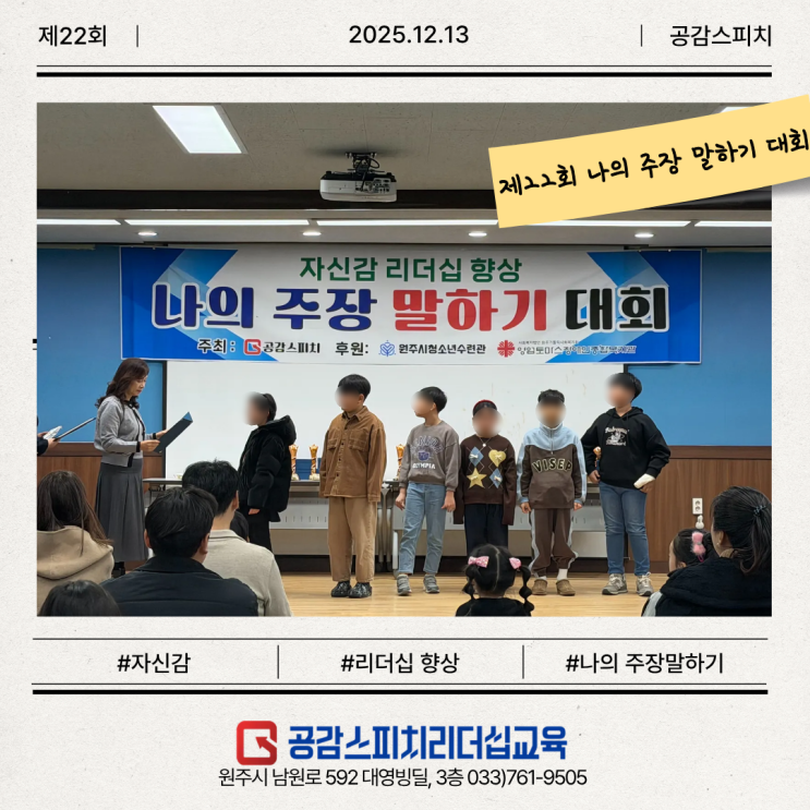 “도전과 성장의 무대, 청소년 스피치대회 성료”_제22회 나의 주장 말하기대회_공감스피치리더십교육학원