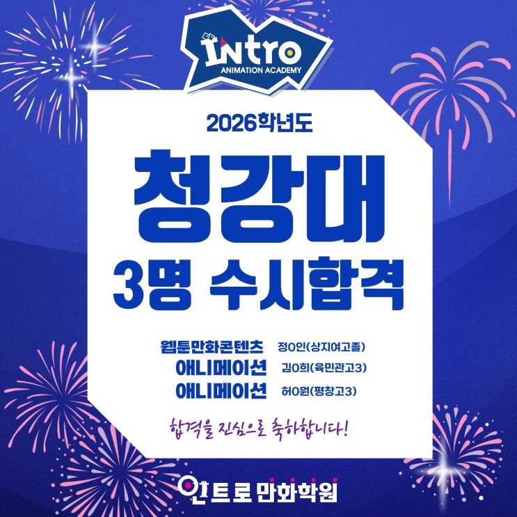 2026 청강대 3명 수시합격!! 원주미술학원 인트로만화학원!!