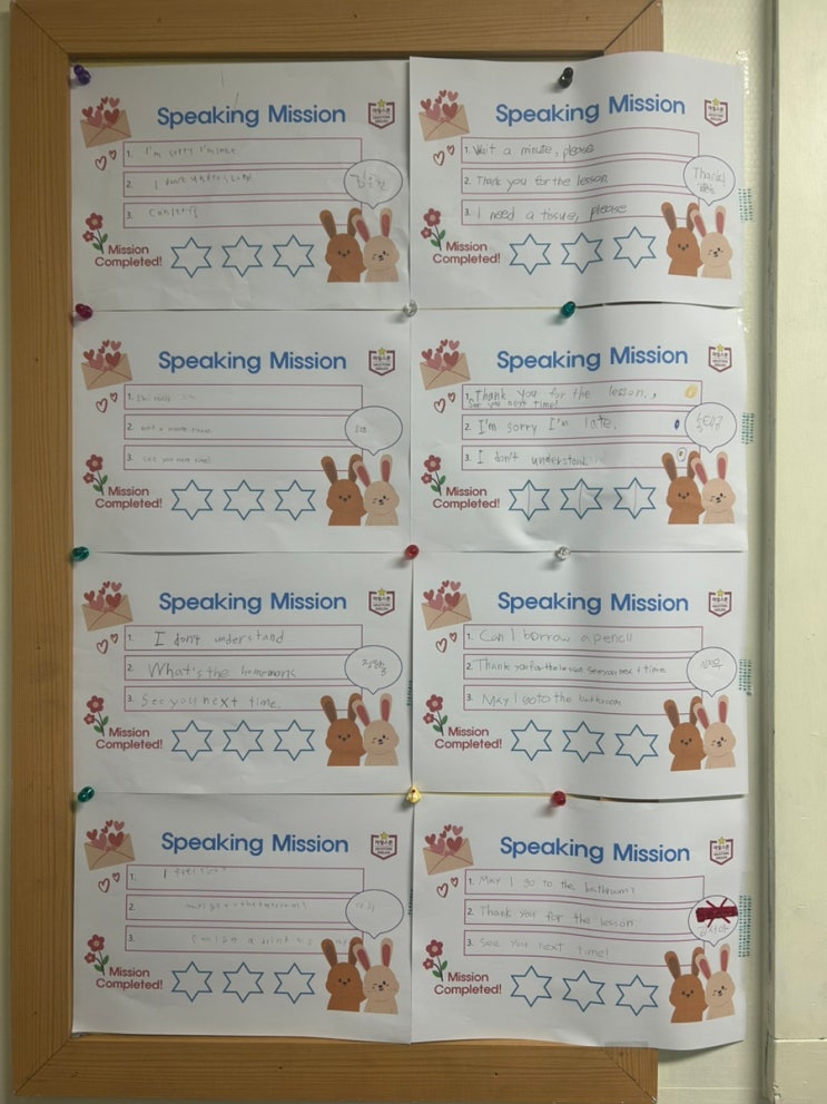 안녕하세요! 초중고 영어 성공 로드맵 마일스톤영어 입니다. 2월 소소하게 반 친구들과 함께 Classroom English Speaking MIssion을 진행하고 있어요:) 상황에 맞는 Classroom English 를 먼저 배우고 자기가 꼭 사용해 볼 표현3개를 골라요! 그리고 2월 중, 수업시간에 친구나 선생님에게 영어로 말해보는 미션입니다! 오늘부터 바로 시작이네요! 다 했어요! 대신 여기저기 I'm done! 소리가 들리네요:) 어쪌수 없이 젤 많이 나오는 표현 Can I go to the toilet? 미션 때문에 화장실 가는 건 아니겠죠? 늘 즐겁고 재밌는 환경 속에 쑥쑥 향상되는 영어 실력! 2월은 두 마리 토끼를 잡아보겠습니다! 다음엔, 고학년 및 중등반 친구들의 근....... <img src="https://blogthumb.pstatic.net/MjAyNjAyMTJfMTc3/MDAxNzcwODgxNzk2NzQ5.0cl1btD7wi9PvkQcNm4aKyfo2w_5frk2Mtg60ANgcXQg.i5zfBY35LyZ7msDBN80LKUX6w3ft6ze7mc0guk7UPogg.JPEG/IMG_3206.jpg?type=s3" />