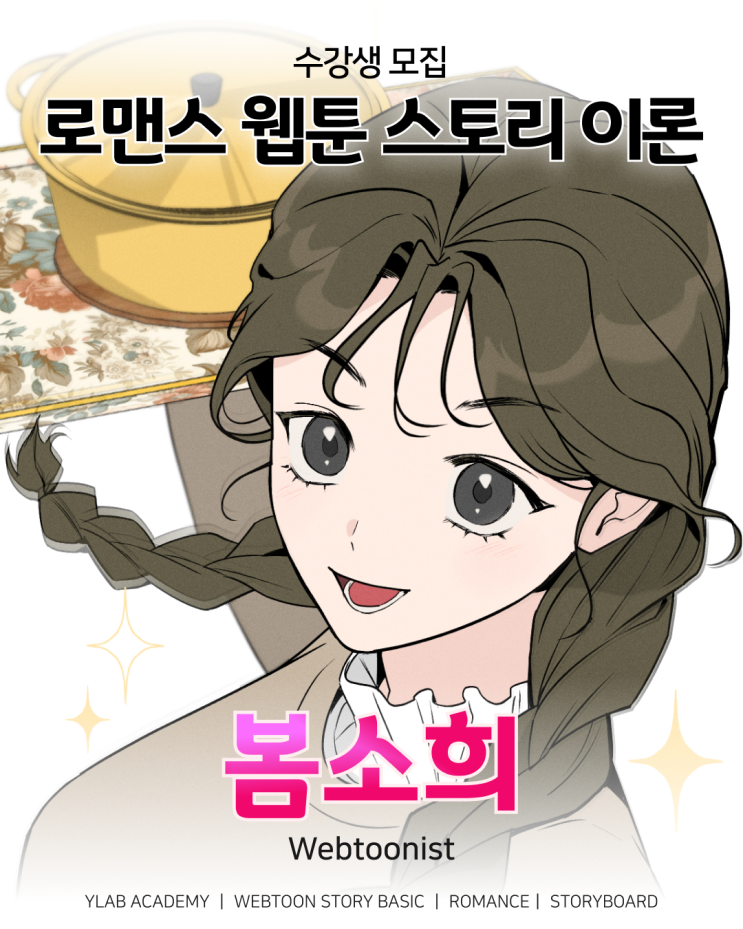 로맨스 웹툰, 막상 쓰려고 하면 어디서부터 시작해야 할지 막막하셨나요? 네이버에서 <청춘정식>을 연재중인 봄소희 작가와 함께 로맨스 웹툰 스토리를 제대로 시작해보세요. ✔ 설레는 소재 선정 & 로그라인 정리 ✔ 매력적인 남녀 주인공과 관계 설계 ✔ 시나리오 작성 ✔ 1화 콘티 구성과 연출 기획부터 콘티까지, 3개월 집중 과정! 6월 연재 직행열차 ‘캠퍼스 로맨스’ 지금부터 준비할 타이밍✍✍ 커리큘럼 보기 <img src="https://blogthumb.pstatic.net/MjAyNjAyMjZfMTgw/MDAxNzcyMDczMTk1Mjgz.UuXWuhrEoTfm18wjGzmaXxmdmuSINQknuUuexkk9Hgkg.1cTggVAlYQ1bD9x__CnYSD-uLeAD36ztxF8bivUn1o4g.PNG/%C8%AB%BA%B8%B9%B0_%BA%BD%BC%D2%C8%F101.png?type=s3" />
