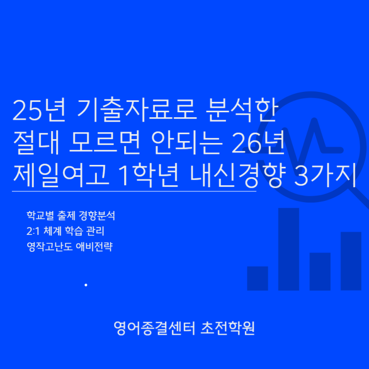 초전동영어학원 학생, 학부모님 안녕하세요. 영어종결센터 초전학원입니다. 중간고사 기간이 시작되었습니다. 오늘은 주말 학교별 분석 네 번째, 제일여고 1학년 분석입니다. 제일여고 1학년 중간 / 기말 비교 이번 26년 제일여고1학년 1학기 중간고사도 작년과 마찬가지로, 단어장+지난해모고+올해모고+교과서+외부지문 이렇게 출제될 것으로 예상됩니다. 제일여고 1학년 시험범위도 동명고처럼 다른 학교에 비해서 넓은 편입니다. 25년 제일여고 중간 vs 기말 핵심 차이 초전동영어학원, 영어종결센터 초전학원에서 제일여고 1학년 기출시험을 분석해본 바. 중간고는 독해력 중심 기말고사는 교과서 정리 + 영작 중심시험이었습니다. 이와 같은....... <img src="https://blogthumb.pstatic.net/MjAyNjAzMTRfMTE4/MDAxNzczNDk0NTk3OTk3.R0z6RbO2p_PVETuTAWZNQiBrvvHh3ylo7i6cZ8tBhysg.4ixZR-zbG_kxudV_ne4jEOsG__yAD81cApKQHV4Uqkgg.PNG/%C1%A6%B8%F1%C0%BB_%C0%D4%B7%C2%C7%D8%C1%D6%BC%BC%BF%E4_-001_%2835%29.png?type=s3" />