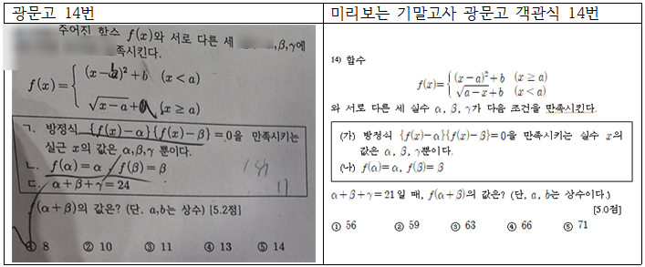 안녕하세요. 강동구 수학/영어의 기준, 티포인트에듀학원입니다. 치열했던 2학기 기말고사가 마무리되었습니다. 우리 아이의 성적표, 안녕하신가요? 오늘은 말로만 하는 "잘 가르친다"가 아닌, 눈으로 확인되는 티포인트에듀의 '분석력'과 '적중률'을 보여드리려 합니다. 팩트체크: 광문고 1학년 적중 사례 광문고 수학, 점점 까다로워 지고있죠? 하지만 이렇게 미리 공부한 문제가 나온다면?? 광문고 14번 vs 티포인트 대비문항 14번 : 문항 번호까지 똑같이 나오다니... 무리함수와 이차함수가 구간별로 정의된 고난도 함수 문제입니다. 실근의 개수와 조건을 묻는 핵심 논리가 토시 하나 안 틀리고 적중했....... <img src="https://blogthumb.pstatic.net/MjAyNTEyMTVfMjYy/MDAxNzY1NzUxMDk5MTU5.KnI-_G70NsVpFYLqkgxe_ZK0sDfLoYpyZwfSTerzqvcg.hpJcvuy8Bl1mpiqAi2Rw9RlP-N2J9neg4OeAfKPx7gQg.PNG/image.png?type=s3" />