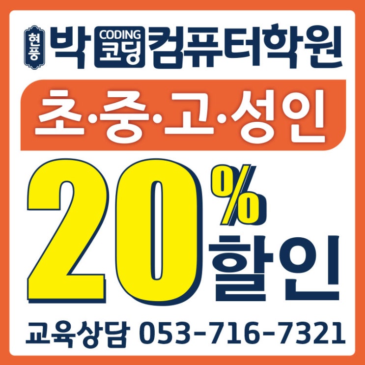 안녕하세요. 박코딩컴퓨터학원입니다. 2026년 3월 신학기를 맞아 다음과 같이 수강료 할인행사 를 실시합니다. 이번 수강료 할인행사는 현풍점, 세천점만 진행합니다. 이용에 착오 없으시기 바랍니다. - 행사기간 - 3월 9일 부터 ~ 3월 31일 까지 등록에 한합니다. 자세한 상담은 각 지점으로 문의 해주세요~ 이번 수강료 할인행사를 진행하는 학원별 연락처를 알려 드려요~ 박코딩컴퓨터학원 현풍점 053-716-7321 박코딩컴퓨터학원 세천점 053-710-7321 <img src="https://blogthumb.pstatic.net/MjAyNjAzMDZfMjU4/MDAxNzcyNzgzODgzODg4.DPN3E7OxcHe_ZgAowiIgo0HZqZOlaiCKcyM-BEG5KxMg.KB70M-rFSWTyrqKeZREXzmGhF8POvv2Nc5R3UUlJKnog.JPEG/2026_3%BF%F9%C7%D2%C0%CE%28%C7%F6%C7%B3%29.jpg?type=s3" />