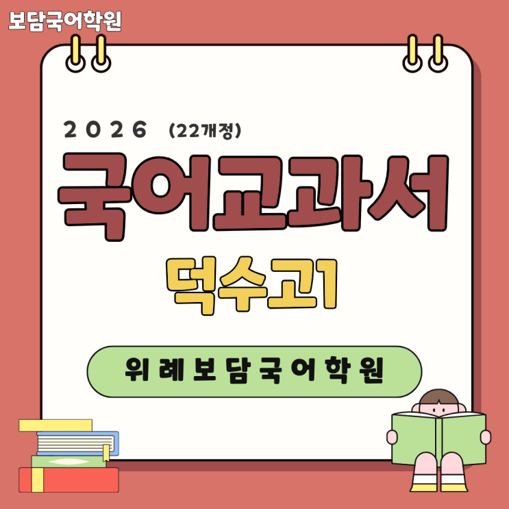 안녕하세요~ 보담국어 학원 입니다. 오늘은 덕수고1 (22개정) 국어 교과서에 대해 소개합니다. 2025학년도부터 고등학교 국어는 **2022 개정 교육과정(22개정)**이 본격적으로 적용됩니다. 국어는 “고1 국어”라는 하나의 기준이 아니라 “우리 학교 국어”에 맞춘 수업이 필요합니다. 덕수고 1학년 국어교과서 공통국어 1 - 천재교과서(김수학) 공통국어 2 - 천재교과서(김수학) ✔ 보담국어학원은 ‘학교별 국어 수업’을 합니다 국어는 모든 고등학생을 같은 교재, 같은 진도로 수업하지 않습니다. 22개정 국어에서는 특히 학교별 교과서 선택 단원 구성 순서 시험 문제 스타일 이 모두가 다르기 때문에 학교별 수업이 필수입니다. 그래서 보....... <img src="https://blogthumb.pstatic.net/MjAyNjAyMDdfMTk1/MDAxNzcwNDU4MDc1NDQx.-KcQNbIAKOAG6Wuua9_jKW41FEYSp4hlXZ1F5lUVsh8g.gRj7i0qFRPkoHljQp5ll59CUKzLQ6dwPgNOxeP7w-Ngg.PNG/1.png?type=s3" />