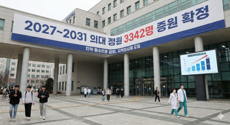 안녕하세요. AI코드_스튜디오 입니다. 정부가 발표한 의대 정원 3,342명 증원 소식은 현재 중학교 2학년부터 고등학교 3학년 학생들의 대입 지형도를 완전히 바꾸어 놓았습니다. 단순히 '정원이 늘어난다'는 기대를 넘어, 어디서, 어떻게 뽑느냐에 따라 누군가에게는 일생일대의 기회가, 누군가에게는 더 치열해진 가시밭길이 될 수 있습니다. 2026년 2월 12일, 교육계를 뜨겁게 달구고 있는 핵심 뉴스 3가지를 정리해 드립니다. 급변하는 상황 속에서 우리 아이의 미래를 위한 최선의 전략을 세우는 데 도움이 되기를 바랍니다. 의대 진학을 꿈꾸는 우리 학생들을 위해, 학년별 핵심 전략과 분석 내용을 전해드립니다. 1. [정원 분석....... <img src="https://blogthumb.pstatic.net/MjAyNjAyMTFfMTU0/MDAxNzcwODE1Mzk5NzMw.hM3kK484DBzv3bOV8KXT_9BeFia0RSmq22XE3ZXC5LUg.gC4IrRDvfZFztXhWKaZOFj-9xJx5PBib0X4OJJbd4sMg.PNG/Gemini_Generated_Image_on2r26on2r26on2r.png?type=s3" />