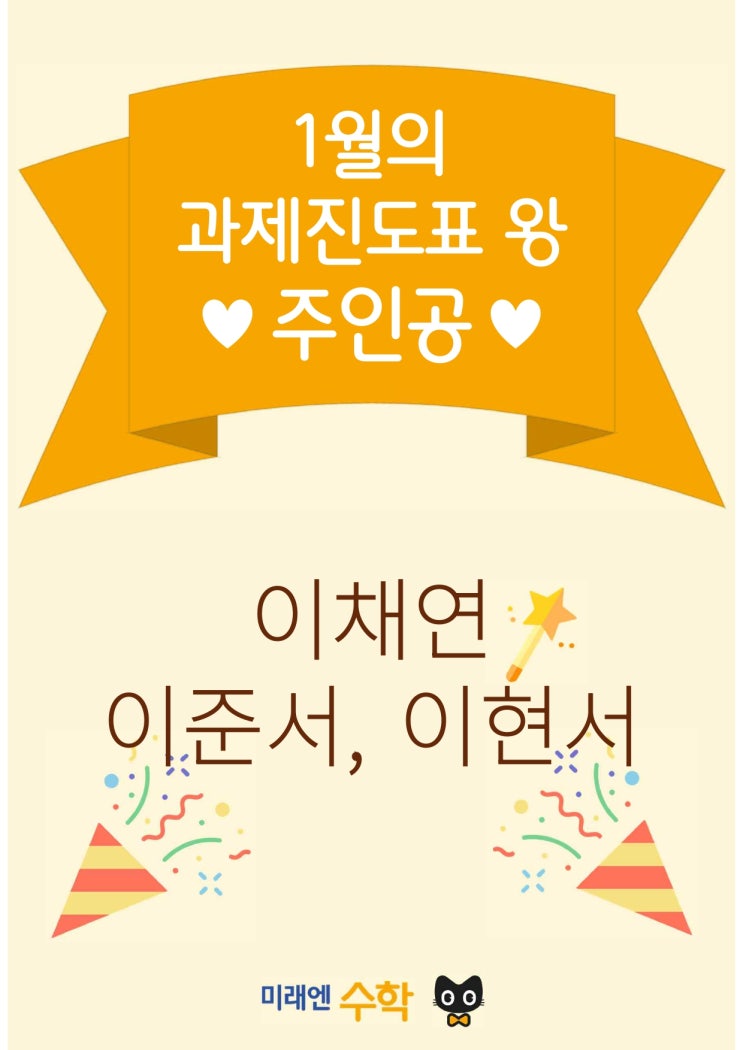 안녕하세요! 삼성영어 미래엔수학 삼전학원입니다. 2026년 새해가 밝았습니다 새로운 다짐과 목표로 시작한 1월, 우리 삼전학원 학생들의 열정도 그 어느 때보다 뜨거웠는데요! 오늘은 1월의 과제진도표왕 소식을 전해드리며, 한 달 동안 성실하게 자신의 학습을 관리해온 우리 학생들의 자랑스러운 성과를 소개해 드리려고 합니다 :) 1월의 미래엔수학 과제진도표왕 수상자 발표!! 이번 1월 역시 치열한 경쟁 속에서 꾸준함과 성실함을 보여준 학생들이 돋보였습니다. 약 한 달 동안 아래 네 가지 핵심 평가 항목을 기준으로 공정하게 선정하였습니다. ✔ 날짜 준수 ✔ 수업시간 참여도 ✔ 과제 수행 완성도 ✔ 숙제 제출 성실도 단순히 문....... <img src="https://blogthumb.pstatic.net/MjAyNjAyMTFfMTUy/MDAxNzcwNzkzNDk1MTI0.KhCUX_YX_WgOheyx4mICNUuydNut_vK23LnD2kWksEQg.uMAL_3eXNqoguXjY1iYBFLPlPc3U8UPmTqDCnoCKIxwg.JPEG/1%BF%F9_%BD%C3%BB%F3_page-0001.jpg?type=s3" />