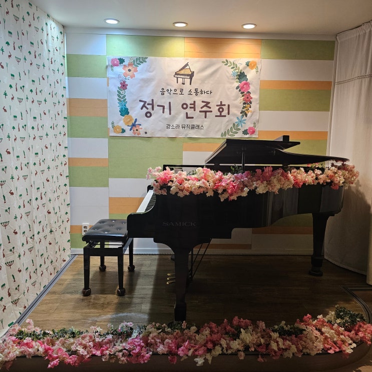 인후동음악학원 강소라뮤직클래스 이야기 2019년 개원 이후, 벌써 7회째 정기연주회를 맞이했습니다. 코로나로 모두가 멈춰야 했던 시기에도 저희는 한 해도 쉬지 않고 영상 연주회라는 방법으로 아이들과 학부모님들을 만났어요. 형식은 달라졌지만, ‘아이들의 성장을 함께 나누는 자리’라는 의미만큼은 단 한 번도 놓치고 싶지 않았기 때문이죠, 이번 정기연주회 역시 그 약속을 지키는 소중한 시간이었습니다. 꽃으로 채운 무대, 마음으로 채운 시간 이번 무대는 꽃으로 예쁘게 장식해 아이들이 무대에 오르는 순간부터 “오늘은 특별한 날”이라는 걸 느낄 수 있도록 준비했어요. 하지만 무대를 진짜 빛나게 만든 건 장식보다도 아이들의 표....... <img src="https://blogthumb.pstatic.net/MjAyNTEyMTZfMyAg/MDAxNzY1ODkxNTcyNDY5.T8zp4oZXfXDkOuf3mCx9uyhoPUeyrO_oZPCDkUcs7aAg.HAUsEO9iXqxpRQJP6RR3L19gX2e27JL83g3AayUJjngg.JPEG/KakaoTalk_20251216_110531354.jpg?type=s3" />