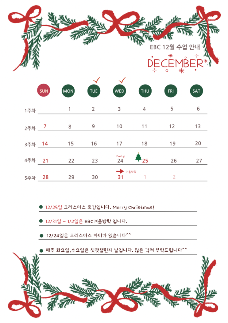 겨울 방학과 크리스마스 휴일 확인 부탁드립니다 Merry Christmas! ♥️ #원어민영어 #부산영어학원 #부산어학원 #영어회화 #연제구영어 #연산동영어 #물만골역 #연제구학원 #연산동 학원 #초등영어 #크리스마스 #크리스마스파티 #겨울방학 #즐거운성탄절 #영어학원파티 #초등영어학원 #연산초 #양동초 #연미초 #배산초 #연제초 #동명초 #초등학교방학 #즐거운영어 #재밌는영어 <img src="https://blogthumb.pstatic.net/MjAyNTEyMTVfMjY1/MDAxNzY1NzYwMTQ4NzY3.fqsPMw2yjYeZlg2rdAKoP8vi4EMRJ1DpHvDPPofN2Kkg.abFDj4CcfVw_Zy9LdIBUKRWl5HItNoiR6E6H2gNNQKAg.PNG/EBC_12%BF%F9_%BC%F6%BE%F7_%BE%C8%B3%BB_%A3%AD_1.png?type=s3" />