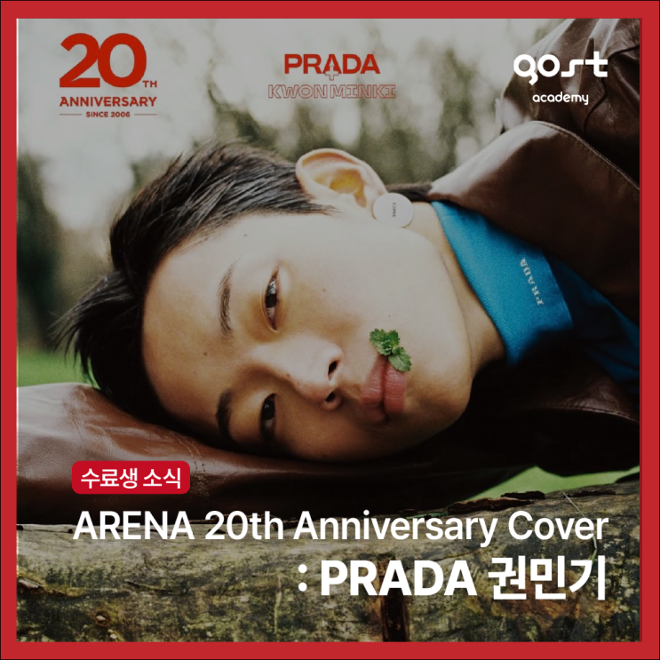 프라다와 함께한 권민기 모델의 몽환적인 감각이 담긴 특별한 화보를 공개합니다! 안녕하세요, 고스트 아카데미입니다. 패션 매거진 아레나 옴므 플러스(ARENA HOMME+)의 창간 20주년을 기념하는 특별한 프로젝트에 고스트 아카데미 수료생 권민기 모델이 함께했습니다. 이번 프로젝트에서 민기 모델은 글로벌 브랜드 프라다(PRADA)와 함께 호흡을 맞추며 독보적인 존재감을 드러냈습니다. 자연과 어우러진 깊이 있는 분위기 이번 화보에서 권민기 모델은 자연 속 몽환적인 배경 아래 프라다의 컨템포러리한 무드를 본인만의 감각으로 새롭게 해석했습니다. 날카로운 눈매와 대조되는 부드러운 카리스마를 통해 한층 성숙해진 분위기를 완성했는....... <img src="https://blogthumb.pstatic.net/MjAyNjAyMjRfMjE2/MDAxNzcxOTExMjYxMzMx.H2-49S6dwx_B2gOSN7SI15inAJpsiWZ9Taz3ao2BS6Mg.52sGbvSZ05aoBuPMBslg_sk1Jmos_IUeeqSfYe8kkOEg.PNG/%BE%C6%B7%B9%B3%AA_20%C1%D6%B3%E2-01.png?type=s3" />