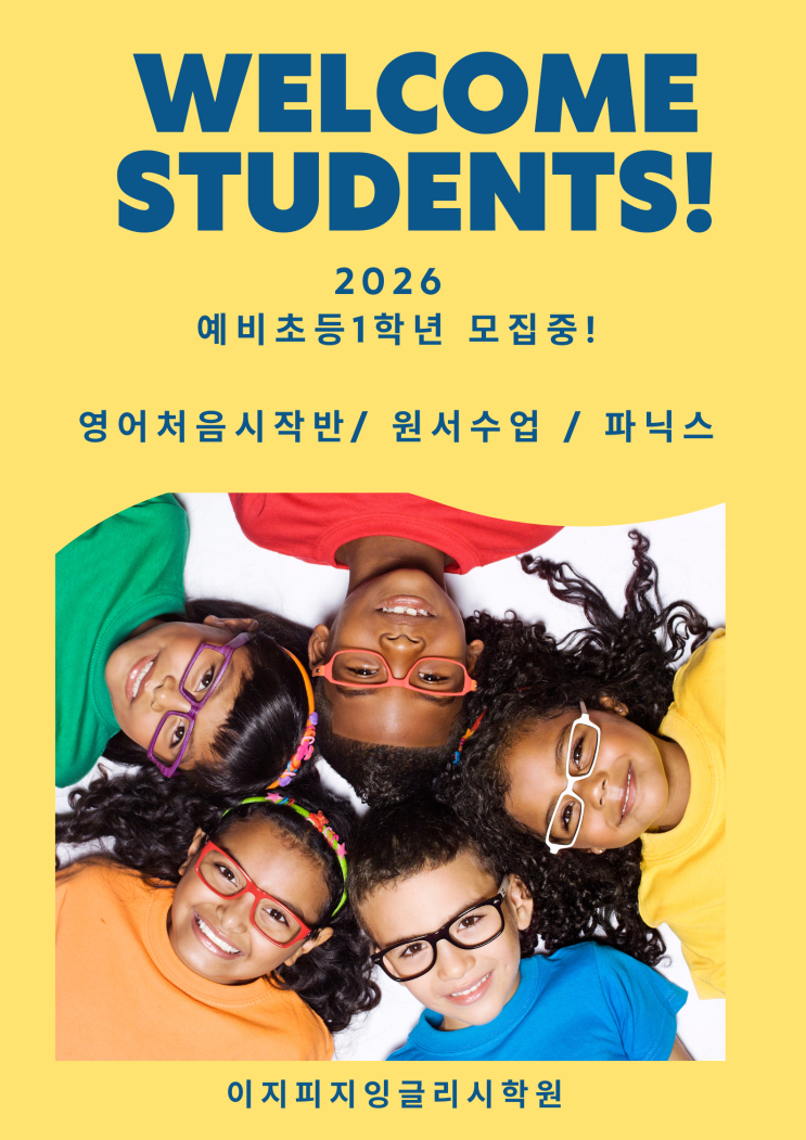 안녕하세요! 원서로 더 재밌게 배우는 #목동초등영어 #이지 피지 잉글리시입니다. #영어 처음 시작반 #원서 동화책 #원서 수업 #정독 다독 26년 예비 초등 1학년 클래스를 모집합니다! 이 지피지 잉글리시에서는 원서 책으로 즐겁게 영어를 시작하고 싶은 친구들을 기다리고 있어요 예비 초등 1학년, 초등학교 입학을 앞둔 지금 우리 아이의 영어를 어떻게 시작해야 할지 고민이 많으실 거예요. 알파벳부터? 문법부터? 단어 암기부터? 하지만 영어를 언어로 받아들이는 가장 자연스러운 방법은 ‘책’입니다. 왜 원서 책으로 영어를 시작해야 할까요? 예비 초등 1학년은 영어를 ‘공부’로 받아들이기보다 이야기와 소리로 흡수할 수 있는 마지막....... <img src="https://blogthumb.pstatic.net/MjAyNjAxMjhfMjM1/MDAxNzY5NTc4NzAzODg3.KAxCPeZAX65NdgiXqxcPwI_oEyQt72fo9NG2NvJ9pmgg.9-nyQbERigPFp9ztzIiz65hD9HbEZCOv1Th14hMnLjog.PNG/Yellow_Colorful_Welcome_Students_Poster.png?type=s3" />