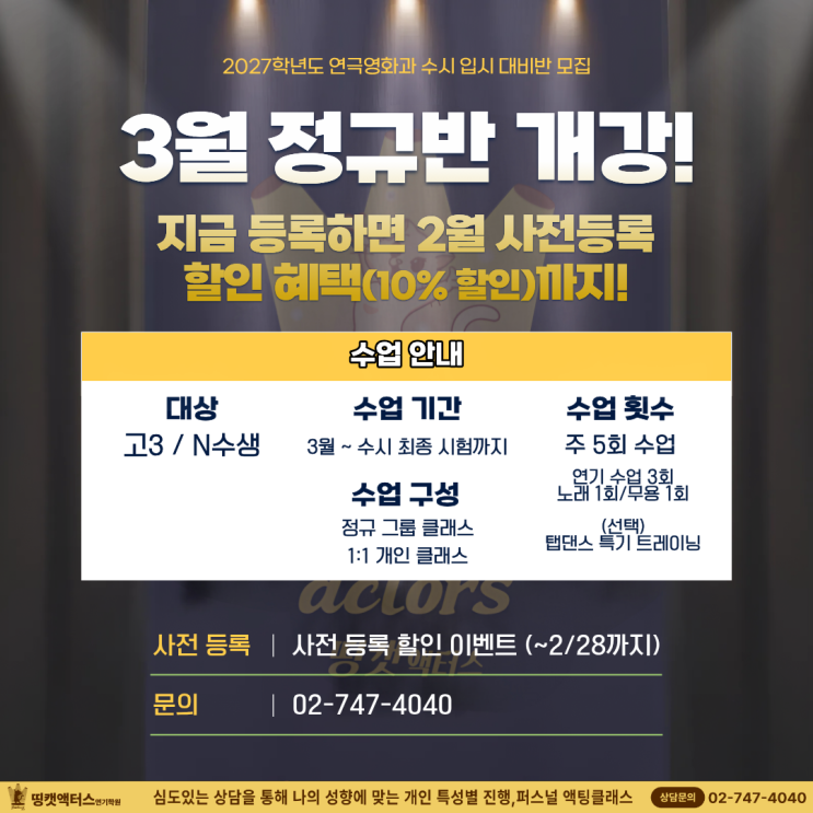 27학년도 연극영화과 수시 입시 대비반 모집 사전 등록 혜택(~2/28까지)