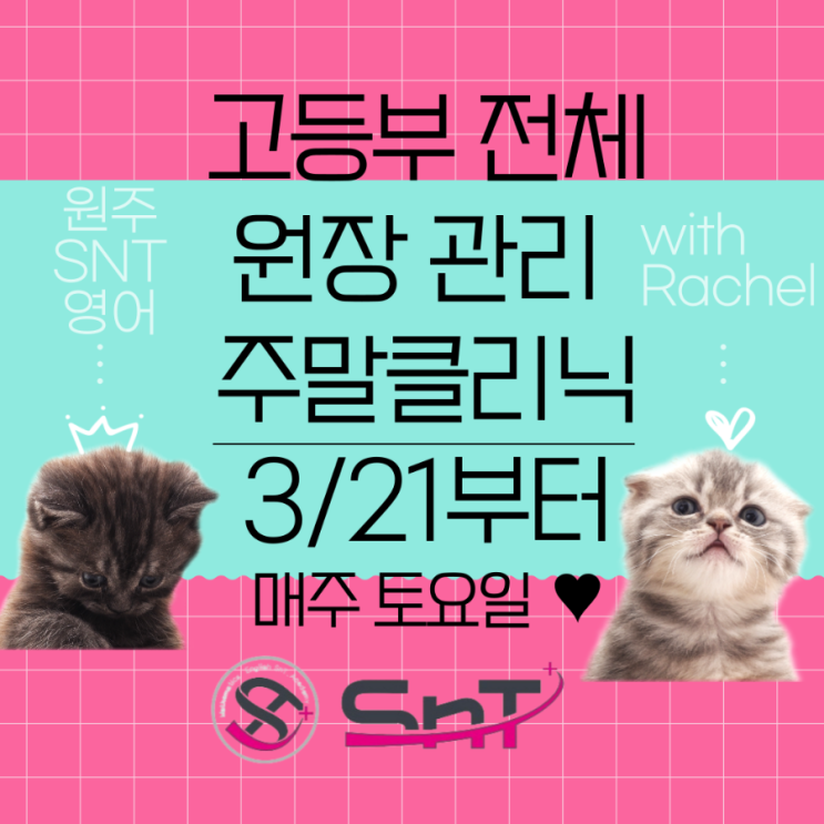 ❤️원주SNT영어학원❤️ 고.등.부.전.체. 원.장.관.리 주말클리닉 3/21부터 매주토요일