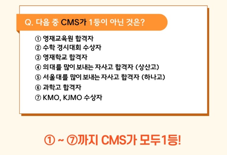 1. 입학테스트 일정 / 시간 / 비용 ● 대상 : 현 초등학교 1학년 ~ 초등학교 5학년 학생 (현 7세는 내년 3월부터 모집(2월부터 테스트 가능)합니다.) ● 일정 : 11/3(월) ~ 11/29(토) (평일 : 오후 3시~7시, 토요일 : 오전 11시, 1시, 3시) ● 시간 : 60분~70분 ● 비용 : 15,000원 2. 입학테스트 결과 및 상담 ● 테스트 당일 오후에 결과 안내(문자 및 메일) ● 테스트이후 2일 이내 유선상담 3. 입학테스트(내용) ● 교과 문항(객관식 20문 / 40점) + 사고력 문항(주관식 + 서술형 10문 / 60점) = 100점 ● 현학년 기준 일반적인 학교 학습범위까지만 출제됩니다.(선행범위는 출제되지 않습니다.) ● 사고력 문제는 풀이과정을 지우지 않....... <img src="https://blogthumb.pstatic.net/MjAyNTExMTNfNzAg/MDAxNzYzMDA1NjA0MjIz.IbLfG0lzy7k2cHW8R6nfuDzBQTLJNjF_nY6-ULPM9kcg.g6hfQo2_3RzteMUaEgJf-yvENZuzoknagQlzYrnwok4g.JPEG/25_%B0%DC%BF%EF_2.jpg?type=s3" />