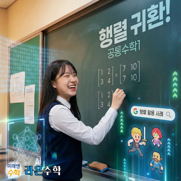 안녕하세요~ 미래엔 남악 라온 수학 학원 윤정쌤입니다^^ 오늘은 예비고1들 수업을 진행하면서 학생들이 많이 했던 질문들 중의 하나인 행렬은 어디에 써먹어요? 행렬은 왜 다시 돌아온거에요?? 행렬 : the MATRIX의 귀환 바로, 행렬에 관한 이야기를 해보려고 합니다^^ '행렬(Matrix)'이 무려 15년 만에 컴백했다는 사실 알고 계신가요? 제가 학교 다닐 때는 당연히 배우던 건데 한동안 쏙 빠졌다가 다시 나타나니 감회가 새롭네요. "수학도 유행이 도나?" 싶으시겠지만, 사실 이건 유행이 아니라 생존의 문제에 가깝습니다 왜 행렬이 다시 돌아왔는지 이게 우리 애들 발목을 잡는 건 아닌지 제가 아는대로 털어드릴게요. 1....... <img src="https://blogthumb.pstatic.net/MjAyNjAxMjVfMjIy/MDAxNzY5MzQ2MDYxMTI3.Ri7f4tJVP8EBe4_tQFJdFg3S8rrhY5DNdchmfeepacIg.nuX7nhOx0PiCshEmLPhnrCPbXf8LwpKtQlqnffVG5Qgg.PNG/%C1%A6%B8%F1%C0%BB_%C0%D4%B7%C2%C7%D8%C1%D6%BC%BC%BF%E4._%2812%29.png?type=s3" />
