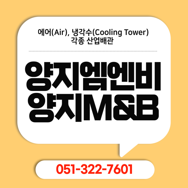 ★ 부산 양지엠엔비(양지M&B) ★ 문의 : 051-322-7601 ★ 위치 : 부산 강서구 제도로 1118 ★ 영업 : 에어(Air), 냉각수(Cooling Tower), 각종 산업배관 공장의 기계들이 쉼 없이 돌아가고 산업 현장의 동력이 흐르는 곳에서 배관은 인체의 혈관과도 같은 역할을 합니다. 공기가 흐르는 길부터 열기를 식혀주는 냉각수 통로에 이르기까지, 어떤 자재를 사용하느냐에 따라 설비의 효율과 안전성이 결정됩니다. 오늘은 부산 강서구 제도에 위치하여 에어 배관부터 냉각수 설비까지 각종 산업용 배관 자재를 전문적으로 다루는 양지엠엔비를 소개해 드리려고 합니다. 이곳은 부산 배관자재 업계에서 탄탄한 입지를 다져온 곳으로, 강서구 제도로....... <img src="https://blogthumb.pstatic.net/MjAyNjAyMTVfMTc3/MDAxNzcxMTQyOTMyMDQ1.i3e9AoYg0ZI5MuEKD7U8Wu7upKnap7mHdEXAFo65UKcg.Bnwbr5SCOo9CSbb-gfFFvVFMo84BlcGd3LAKZolCJEUg.PNG/%B9%CC%BB%E7%BF%EB1_%282%29.png?type=s3" />