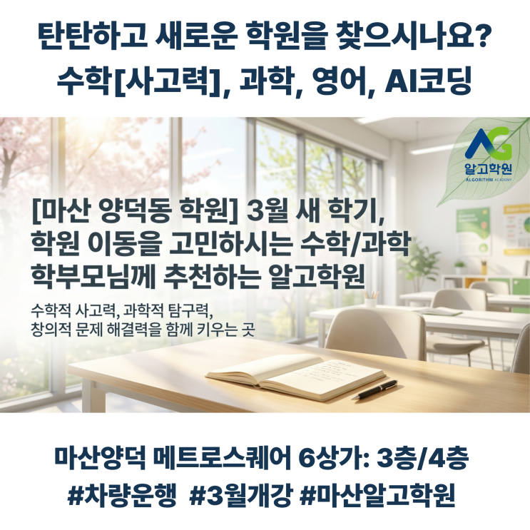 [마산 양덕동 학원] 3월 새 학기, 학원 이동을 고민하시는 학부모님께 추천하는 알고학원 - 수학/과학/영어/AI코딩