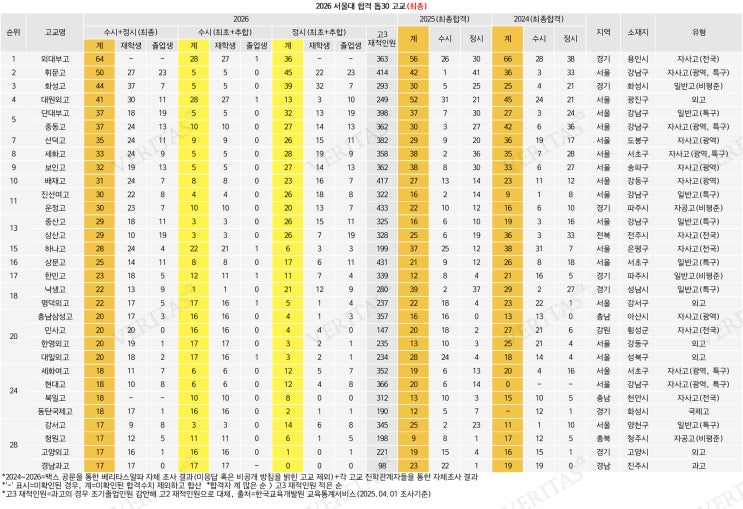 출처 :베리타스 알파 <img src="https://blogthumb.pstatic.net/MjAyNjAyMjZfMjA1/MDAxNzcyMDkxMzUzMzQ3.6A7El1Yu6i15H1j3ngrDpFhPPjtXw5i8cHfMzTAcwicg.ccEvfOau5a0hnEwQ6Cl_Hht7CKodsChCMFRPMvP9WDMg.JPEG/%BC%AD%BF%EF%B4%EB%C7%D5%B0%DD%BB%FD%B9%E8%C3%E2%B0%ED%B5%EE%C7%D0%B1%B3TOP30.jpg?type=s3" />