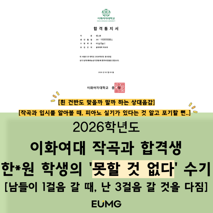 [상대음감? 피아노 고2 시작? 다 괜찮아! 의지만 있다면 뭔들! (feat. 새벽 5시50분)] 2026 이화여대 작곡과 합격생의 '못할 것 없다' 합격 수기 / 음그작곡입시
