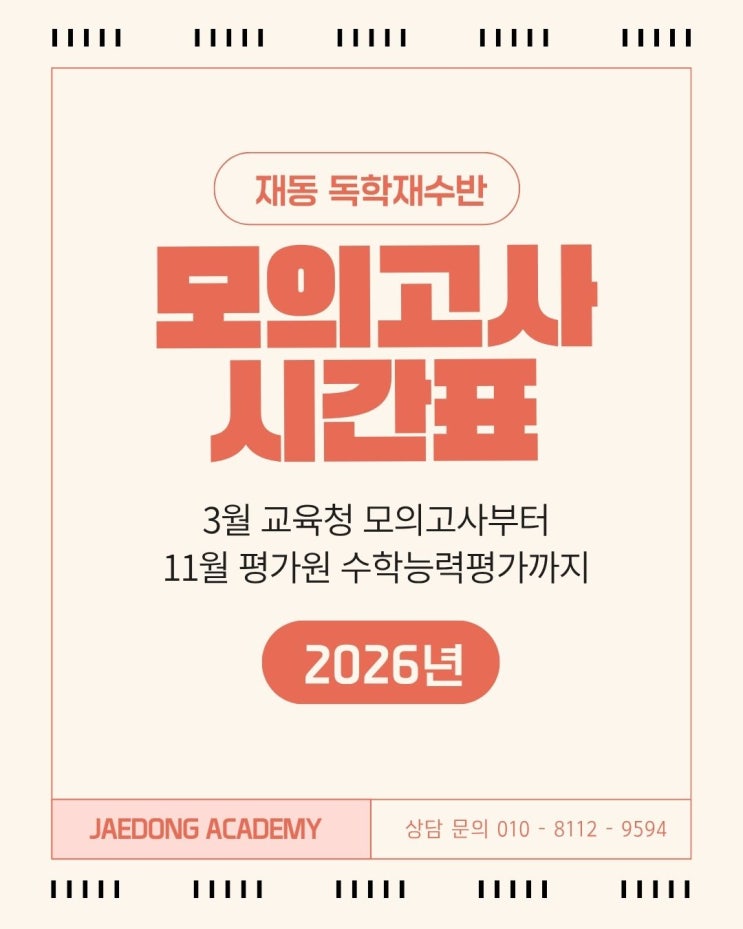 [재동 독학재수반] 2027학년도 수능 / 모의고사 시간표 안내 & 하루 운영 가이드