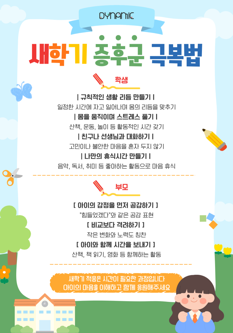 [다이나믹학원] 새학기 증후군, 우리 아이는 괜찮을까요? 극복 방법 알아보기!