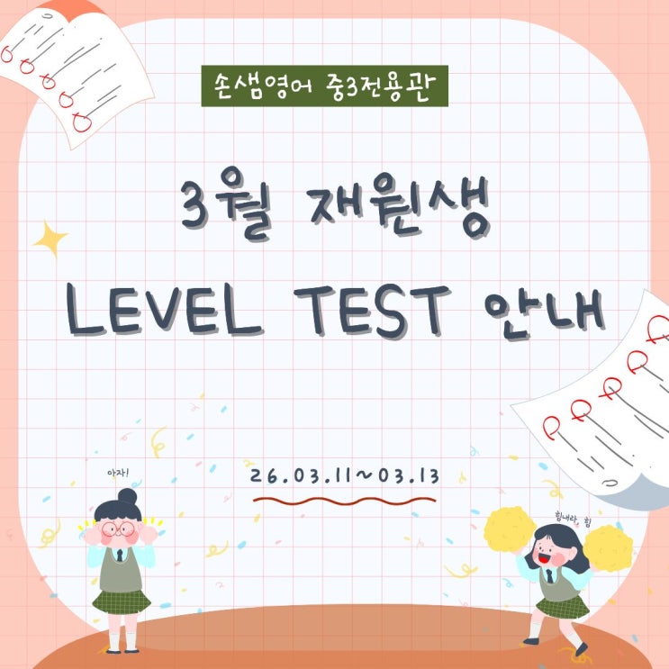 [손샘영어 중3전용관] 3월 재원생 LEVEL TEST 안내